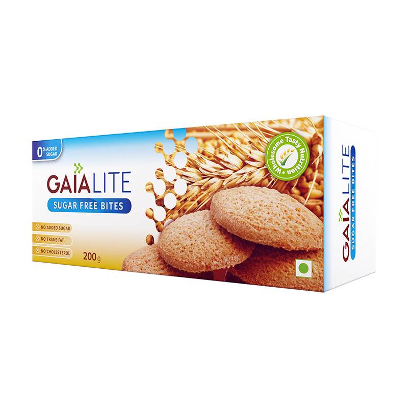 - Gaia lite sugar free bites is a perfect guilt free snacking indulgence prepared with nutritious grains like ragi, bajra, soya and oats